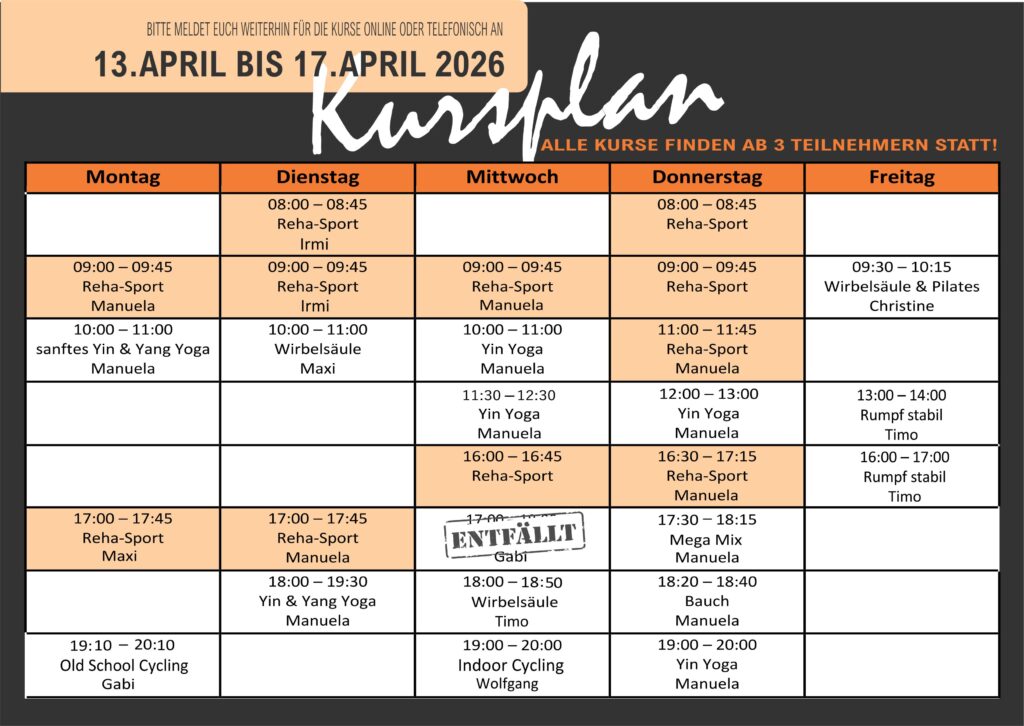 Kursplan Entfall/ Vertretung